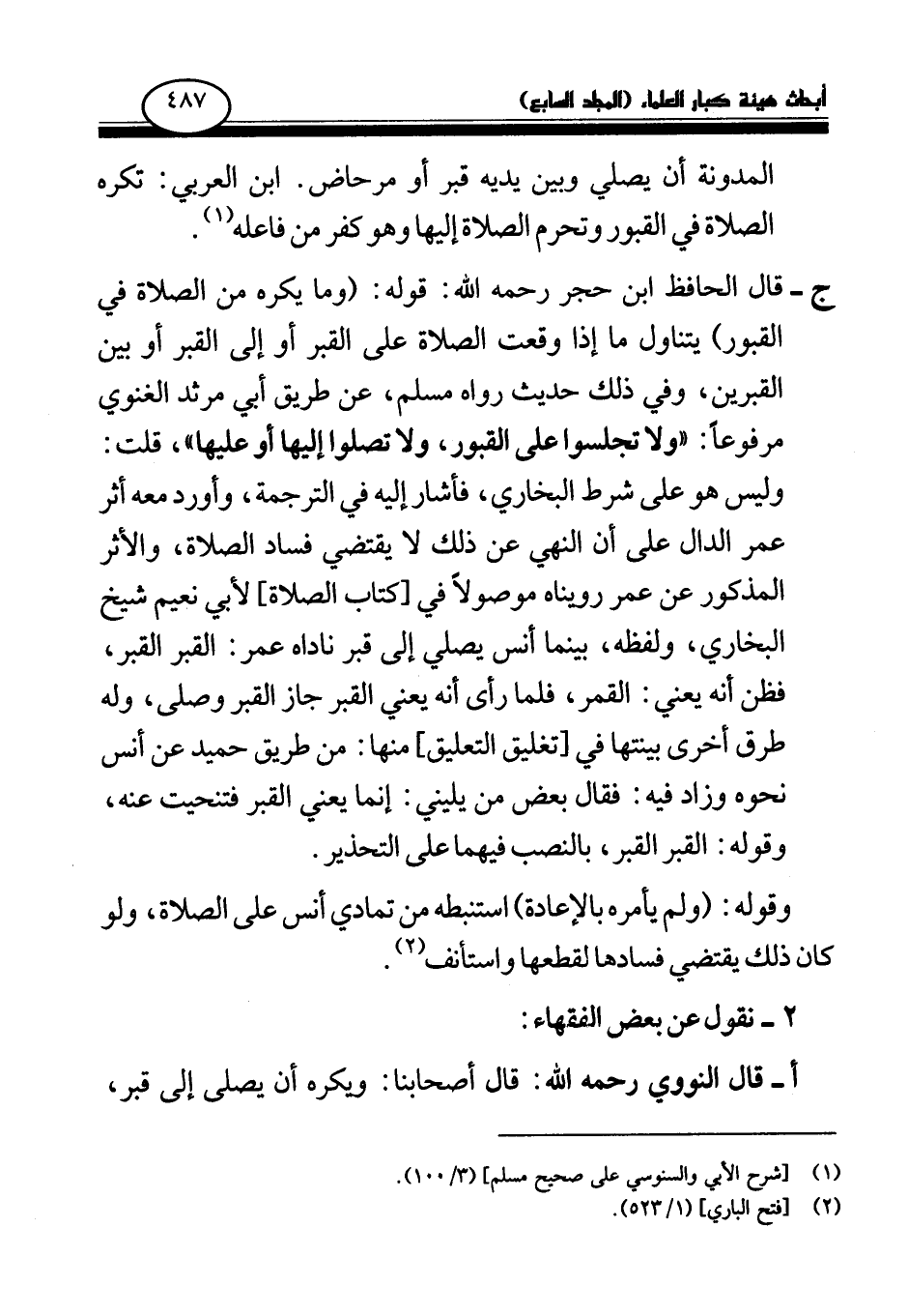 أ- قال النووي رحمه الله: قال أصحابنا: ويكره أن يصلى إلى قبر،