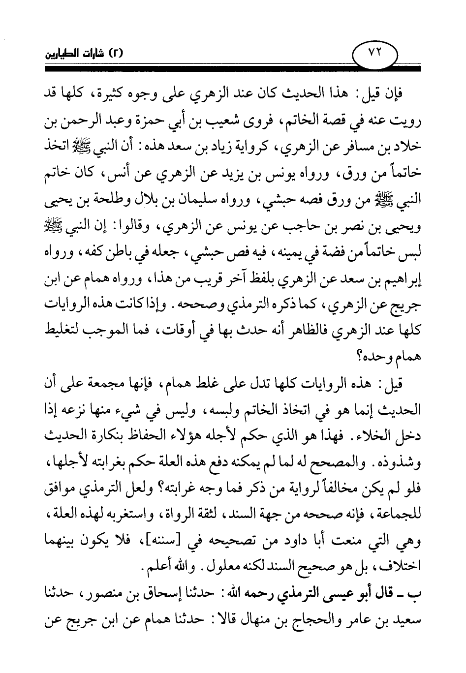 ب- قال أبو عيسى الترمذي رحمه الله: حدثنا إسحاق بن منصور، حدثنا سعيد بن عامر والحجاج بن منهال قالا: حدثنا همام عن ابن جريج عن