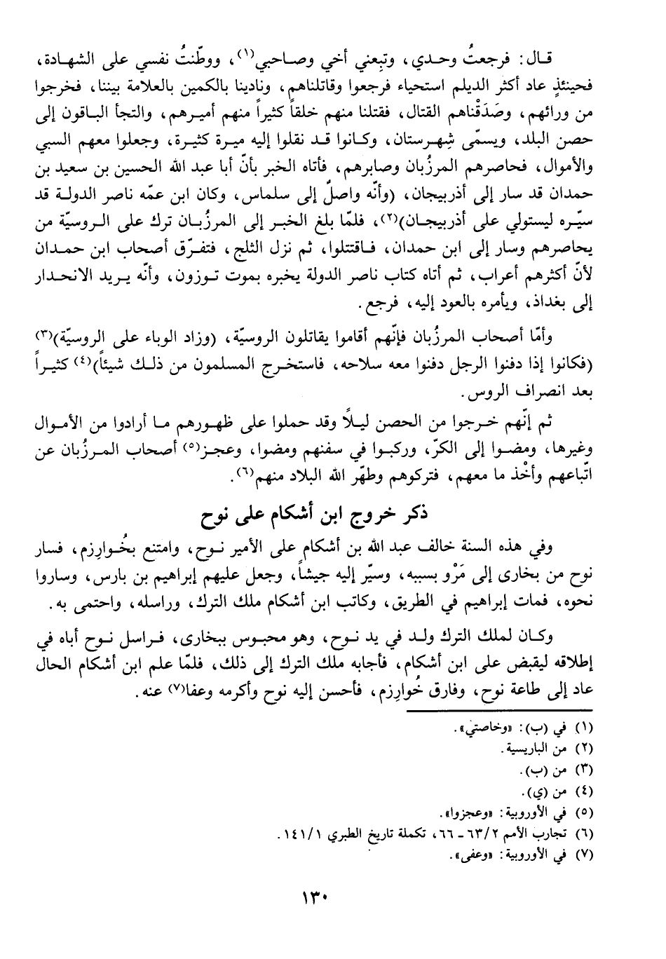 ذِكْرُ خُرُوجِ ابْنِ أَشْكَامَ عَلَى نُوحٍ