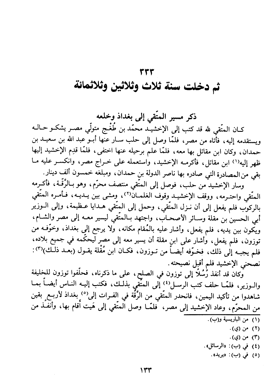 ثُمَّ دَخَلَتْ سَنَةُ ثَلَاثٍ وَثَلَاثِينَ وَثَلَاثِمِائَةٍ