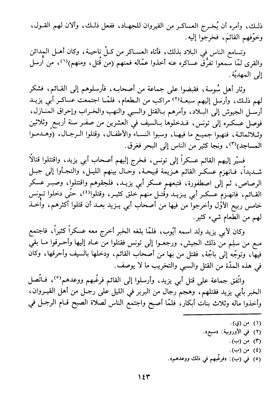 ذَلِكَ، وَأَمَرَهُ أَنْ يُخْرِجَ الْعَسَاكِرَ مِنَ الْقَيْرَوَانِ لِلْجِهَادِ، فَفَعَلَ ذَلِكَ، وَأَلَانَ لَهُمُ الْقَوْلَ، وَخَوَّفَهُمُ الْقَائِمُ، فَخَرَجُوا إِلَيْهِ.