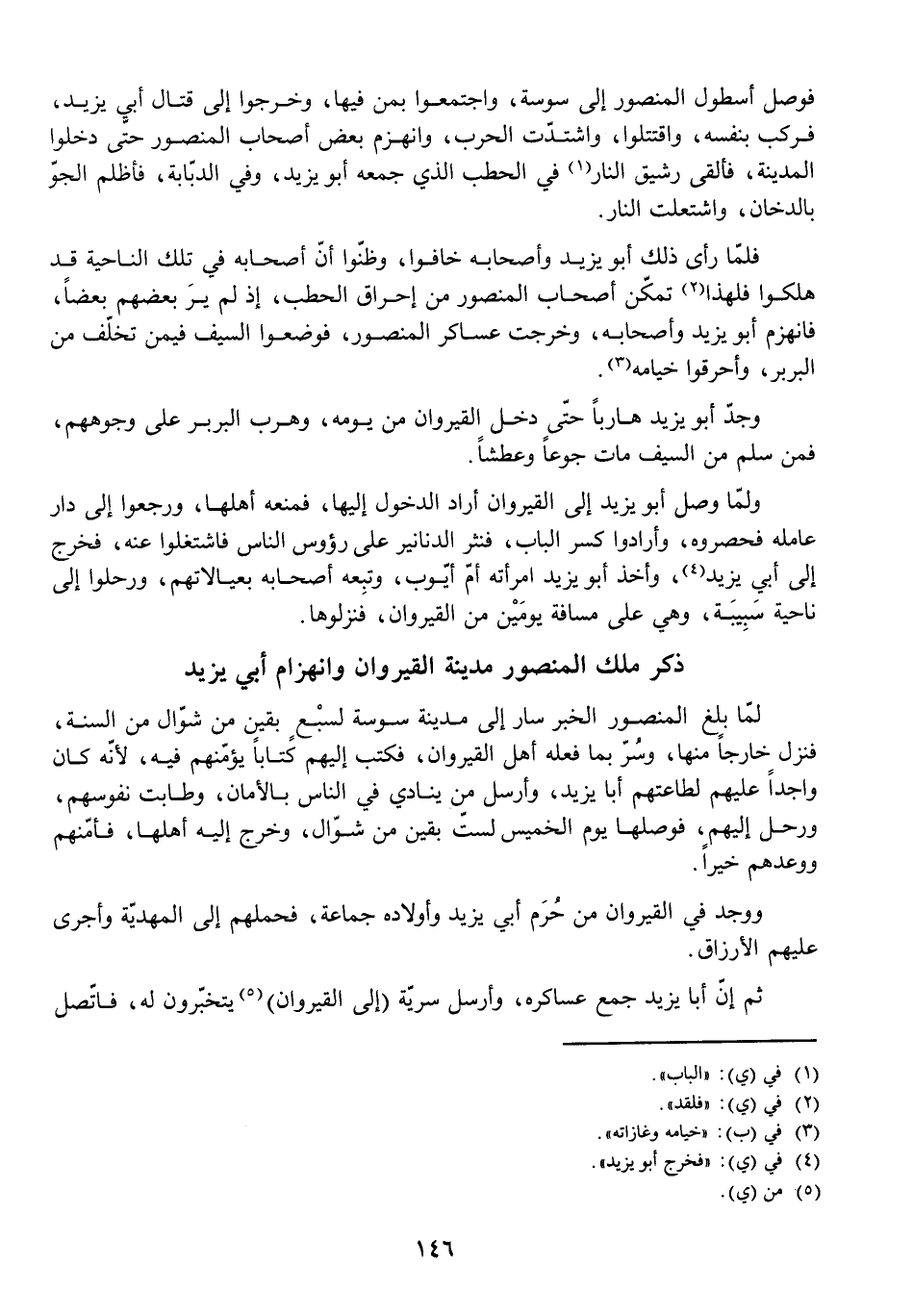 ذِكْرُ مِلْكِ الْمَنْصُورِ مَدِينَةَ الْقَيْرَوَانِ وَانْهِزَامِ أَبِي يَزِيدَ