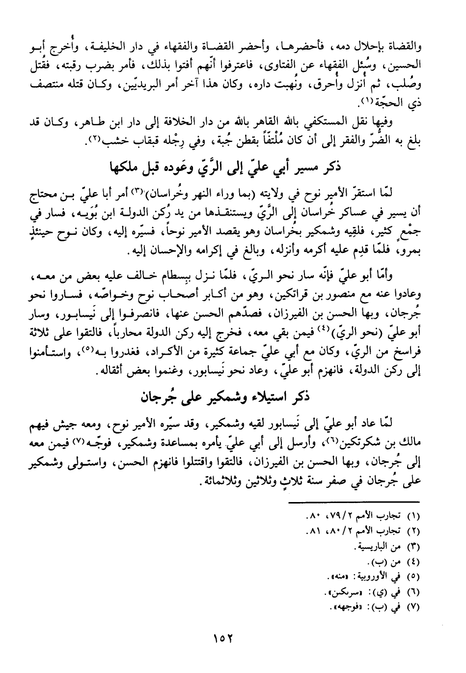 لَمَّا عَادَ أَبُو عَلِيٍّ إِلَى نَيْسَابُورَ، لَقِيَهُ وَشْمَكِيرُ، وَقَدْ سَيَّرَهُ الْأَمِيرُ نُوحٍ وَمَعَهُ جَيْشٌ فِيهِمْ مَالِكُ بْنُ شَكَرْتَكِينَ، وَأَرْسَلَ إِلَى أَبِي عَلِيٍّ يَأْمُرُهُ بِمُسَاعَدَةِ وَشْمَكِيرَ، فَوُجِّهَ فِيمَنْ مَعَهُ إِلَى جُرْجَانَ، وَبِهَا الْحَسَنُ بْنُ الْفَيْرُزَانِ، فَالْتَقَوْا وَاقْتَتَلُوا فَانْهَزَمَ الْحَسَنُ، وَاسْتَوْلَى وَشْمَكِيرُ عَلَى جُرْجَانَ فِي صَفَرٍ سَنَةَ ثَلَاثٍ وَثَلَاثِينَ وَثَلَاثِمِائَةٍ.