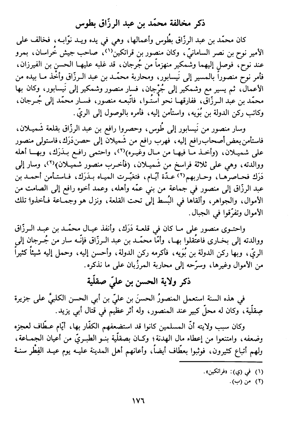 ذِكْرُ مُخَالِفَةِ مُحَمَّدِ بْنِ عَبْدِ الرَّزَّاقِ بِطُوسَ
