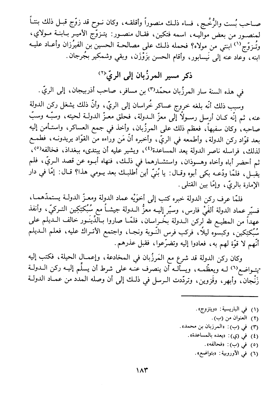 ذِكْرُ مَسِيرِ الْمَرْزُبَانِ إِلَى الرَّيِّ