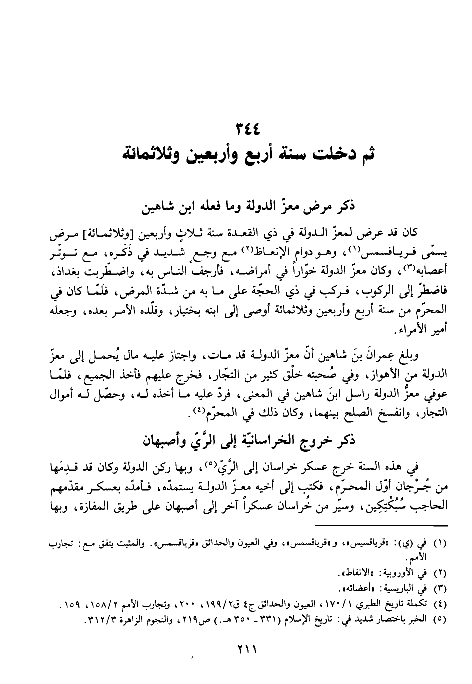 ثُمَّ دَخَلَتْ سَنَةُ أَرْبَعٍ وَأَرْبَعِينَ وَثَلَاثِمِائَةٍ