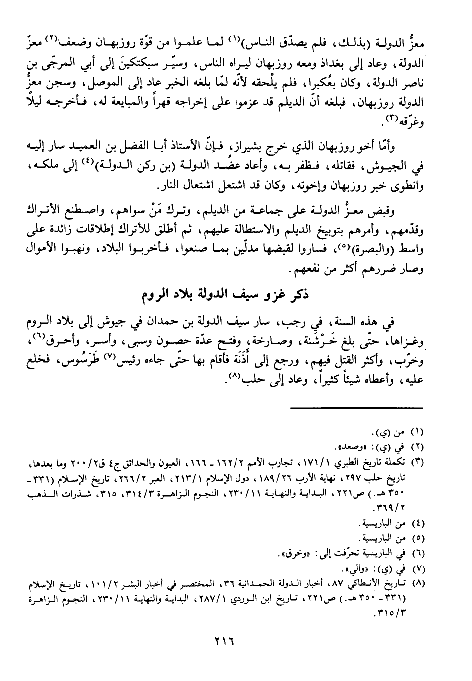 ذِكْرُ غَزْوِ سَيْفِ الدَّوْلَةِ بِلَادَ الرُّومِ
