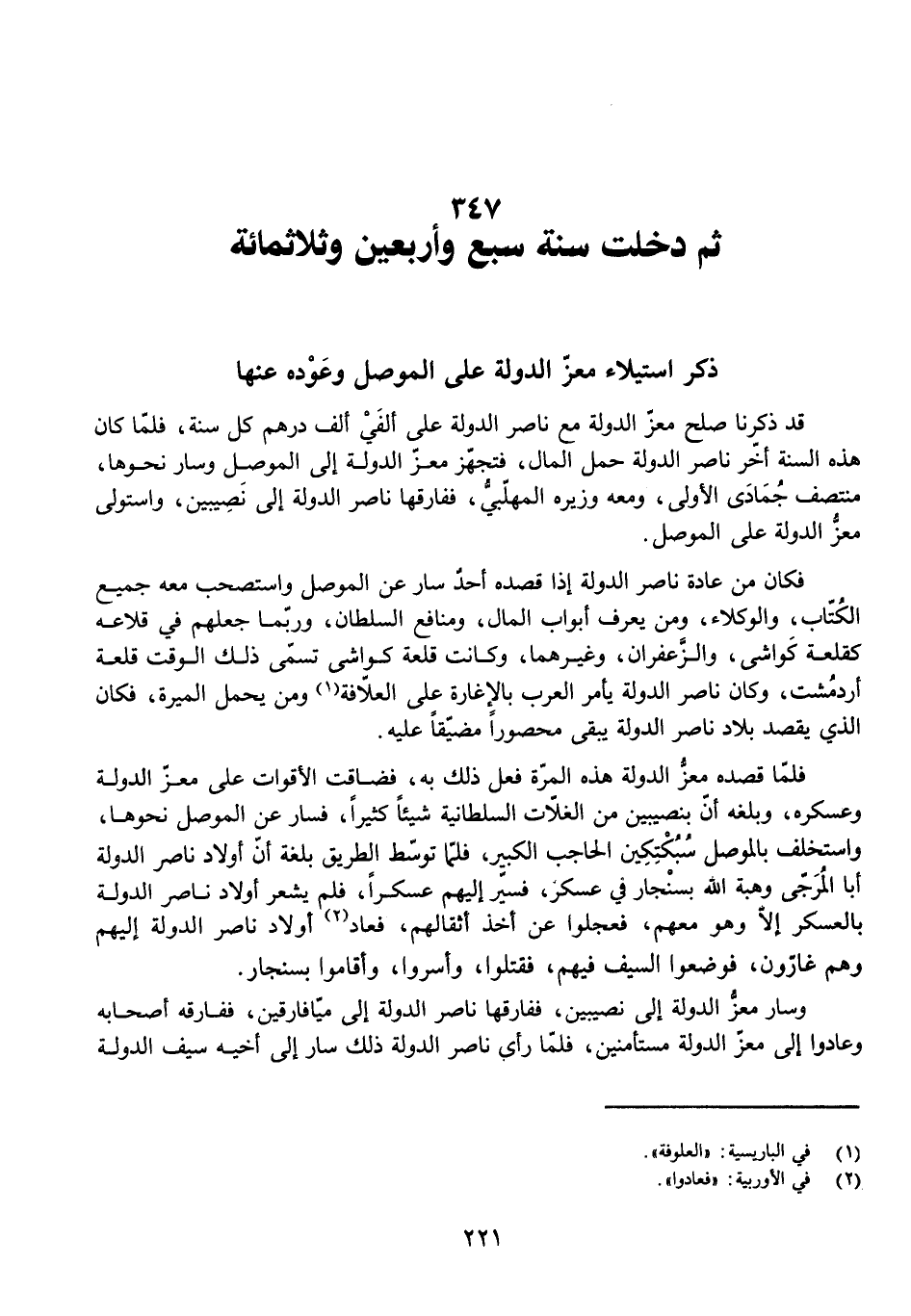 ثُمَّ دَخَلَتْ سَنَةُ سَبْعٍ وَأَرْبَعِينَ وَثَلَاثِمِائَةٍ