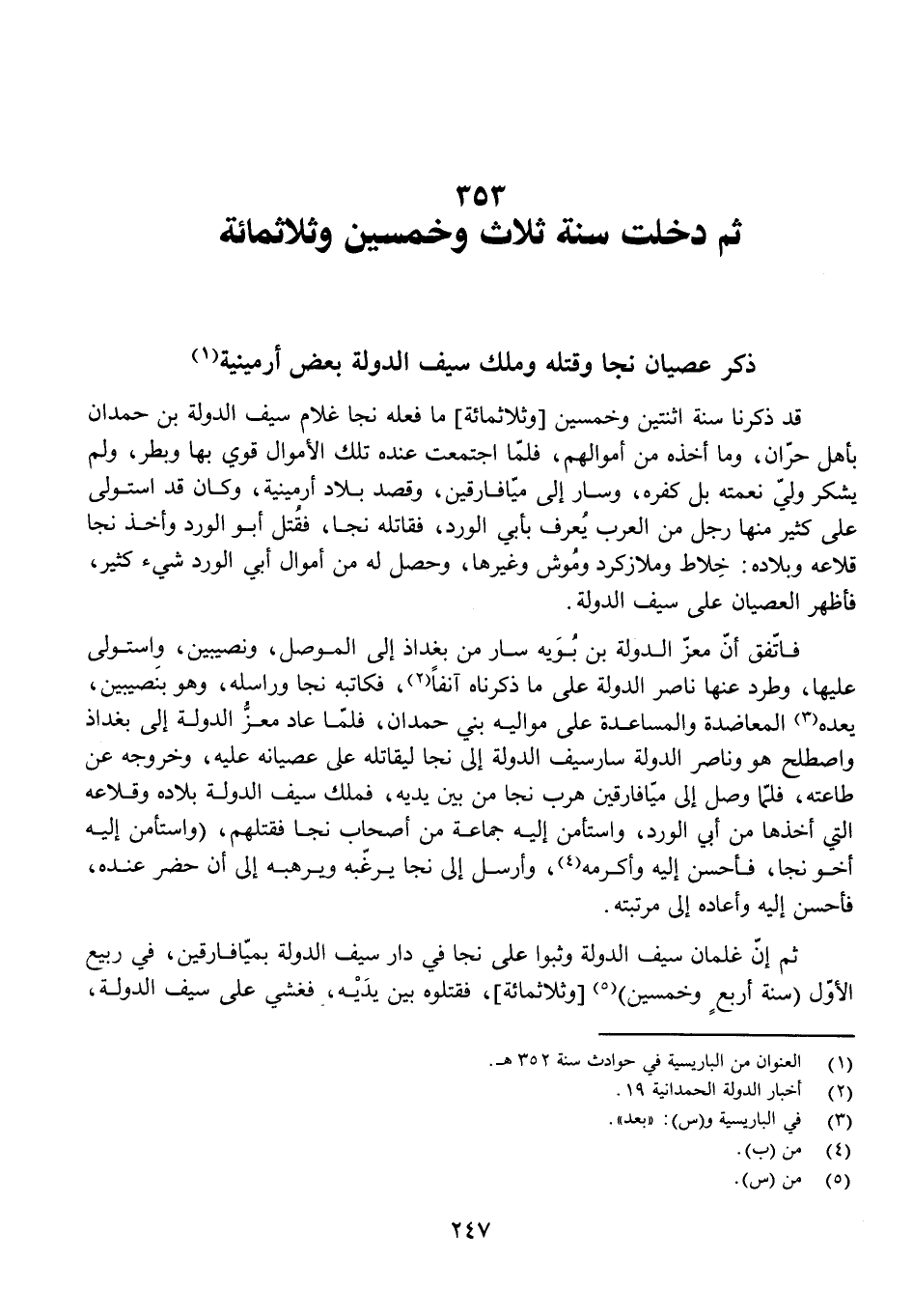 ثُمَّ دَخَلَتْ سَنَةُ ثَلَاثٍ وَخَمْسِينَ وَثَلَاثِمِائَةٍ