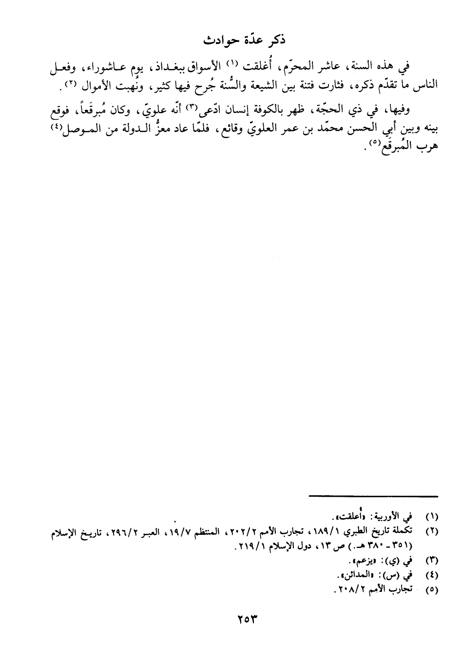 ذِكْرُ عِدَّةِ حَوَادِثَ