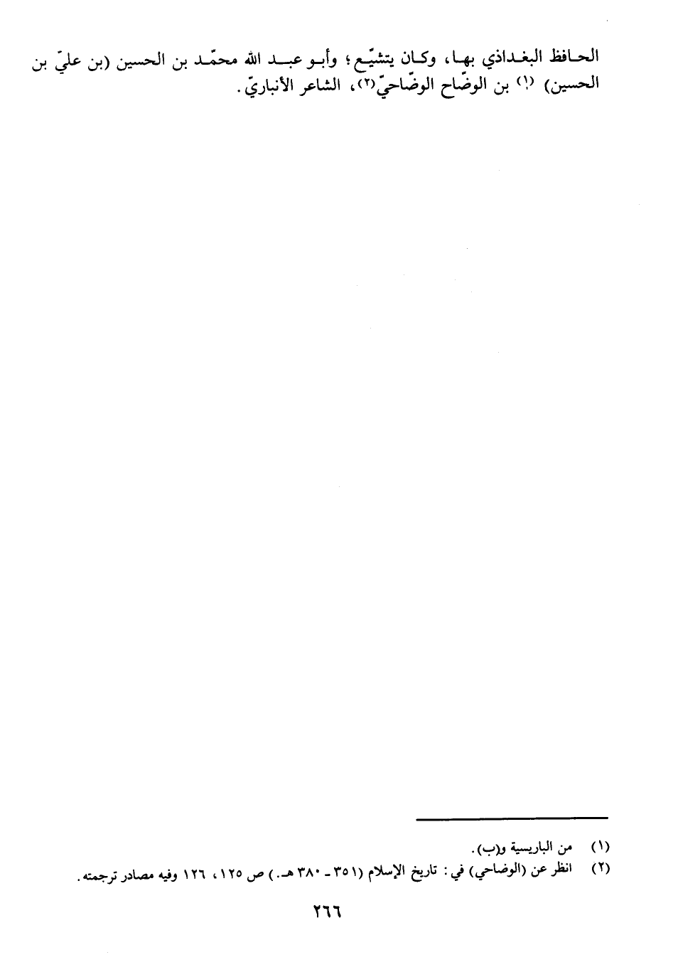 الْحَافِظُ الْبَغْدَادِيُّ بِهَا، وَكَانَ يَتَشَيَّعُ، وَأَبُو عَبْدِ اللَّهِ مُحَمَّدُ بْنُ الْحُسَيْنِ (بْنِ عَلِيِّ بْنِ الْحُسَيْنِ) بْنِ الْوَضَّاحِ الْوَضَّاحِيُّ، الشَّاعِرُ الْأَنْبَارِيُّ.