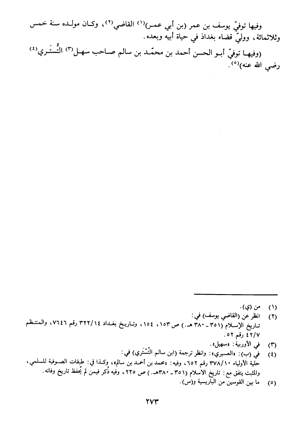 (وَفِيهَا تُوُفِّيَ أَبُو الْحَسَنِ أَحْمَدُ بْنُ مُحَمَّدِ بْنِ سَالِمٍ صَاحِبُ سَهْلٍ التُّسْتَرِيُّ - رَضِيَ اللَّهُ عَنْهُ) .
