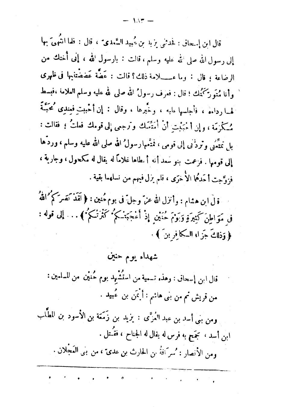 قَالَ ابْنُ إسْحَاقَ: وَهَذِهِ تَسْمِيَةُ مَنْ اُسْتُشْهِدَ يَوْمَ حُنَيْنٍ مِنْ الْمُسْلِمِينَ: