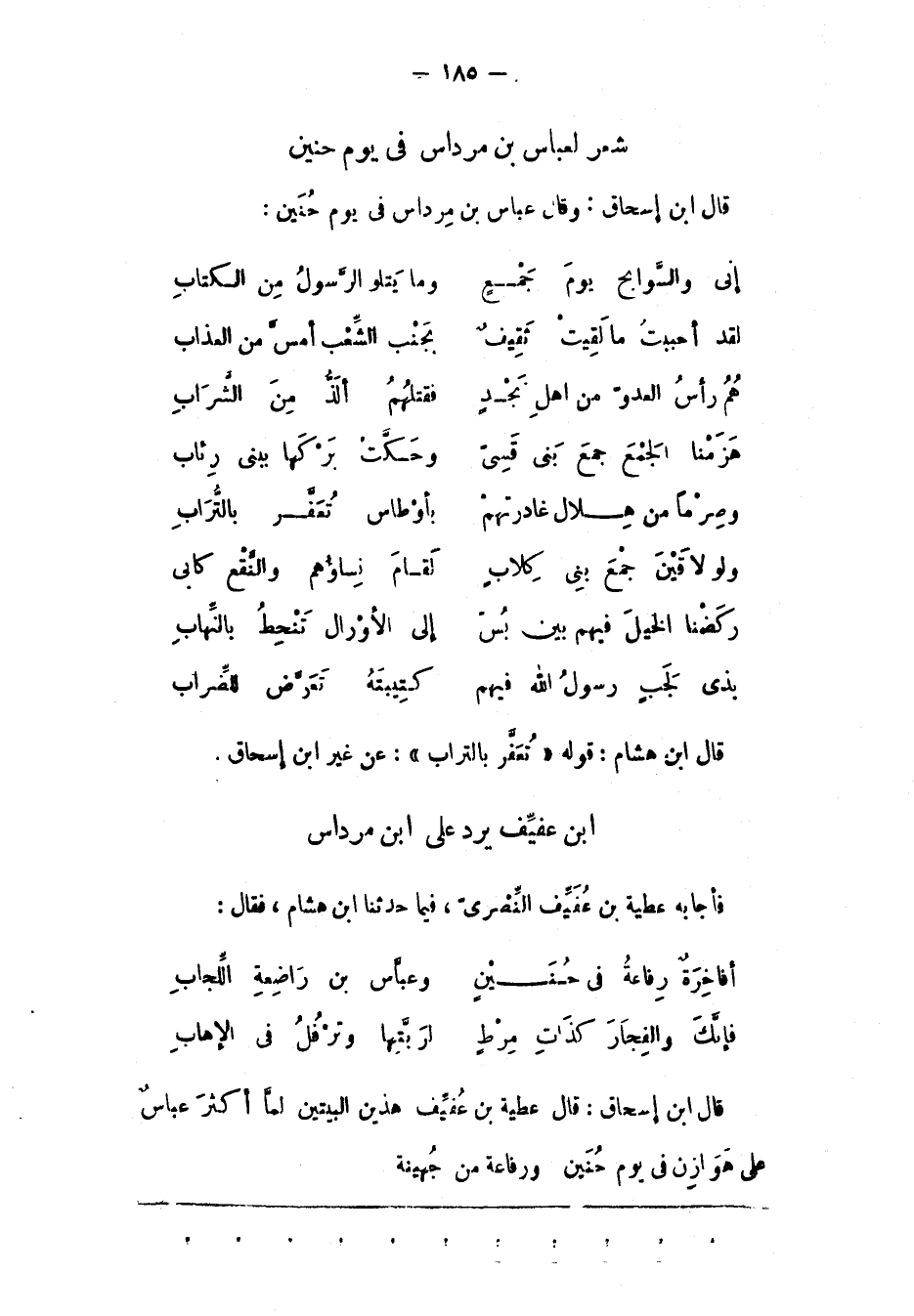 قَالَ ابْنُ إسْحَاقَ: وَقَالَ عَبّاسُ بْنُ مِرْدَاسٍ فِي يَوْمِ حُنَيْنٍ: