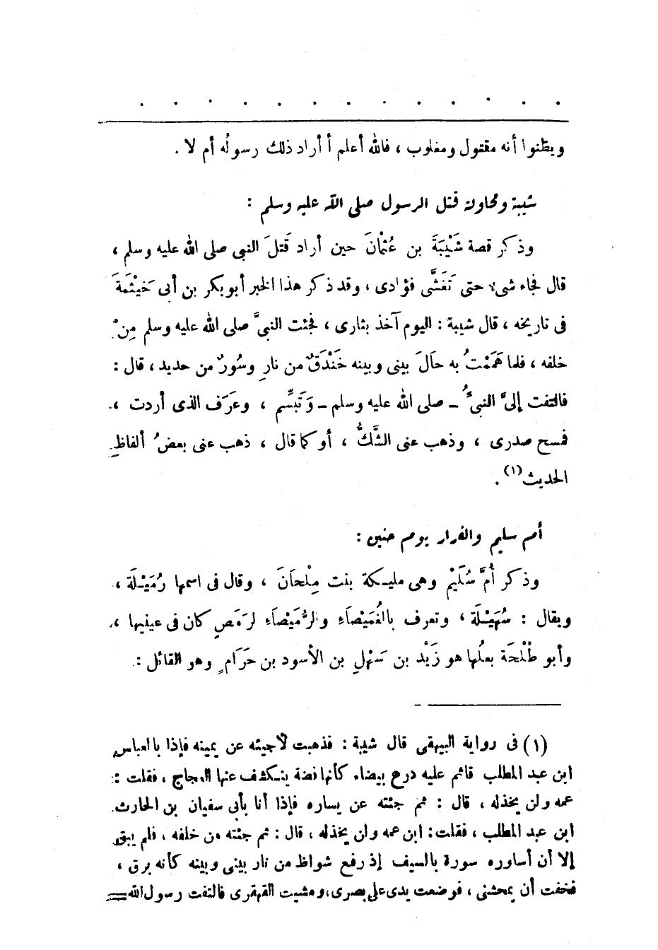 (1) فى رواية البيهقى قال شيبة: فذهبت لأجيئه عن يمينه فإذا بالعباس ابن عبد المطلب قائم عليه درع بيضاء كأنها فضة ينكشف عنها العجاج، فقلت: عمه ولن يخذله، قال: ثم جئته عن يساره فإذا أنا بأبى سفيان بن الحارث ابن عبد المطلب، فقلت: ابن عمه ولن يخذله، قال: ثم جئته من خلفه، فلم يبق إلا أن أساوره سورة بالسيف إذ رفع شواظ من نار بينى وبينه كأنه برق فخفت أن يمحشنى، فوضعت يدى على بصرى، ومشيت القهقرى فالتفت رسول الله-