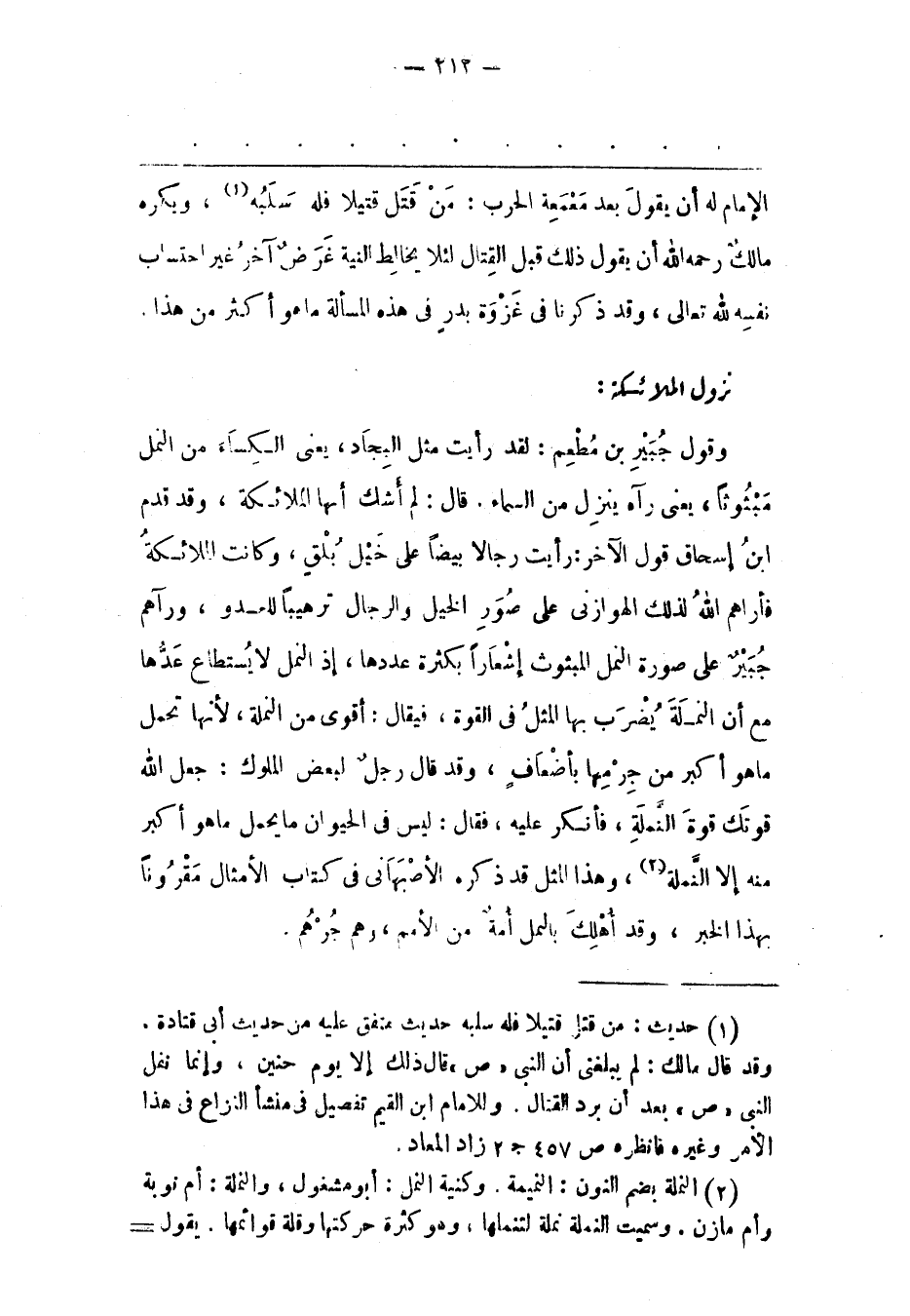 (1) حديث: من قتل قتيلا فله سلبه حديث منفق عليه من حديث أبى قتادة. وقد قال مالك: لم يبلغنى أن النبى «ص» قال ذلك إلا يوم حنين، وإنما نفل النبى «ص» بعد أن برد القتال. وللامام ابن القيم تفصيل فى منشأ النزاع فى هذا الأمر وغيره فانظره ص 457 ج 2 زاد المعاد.