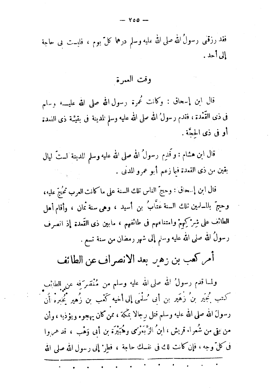 قَالَ ابْنُ إسْحَاقَ: وَكَانَتْ عُمْرَةُ رسول الله صلى الله عليه وسلم في ذِي الْقَعْدَةِ، فَقَدِمَ رَسُولُ اللهِ صَلّى اللهُ عَلَيْهِ وَسَلّمَ الْمَدِينَةَ فِي بَقِيّةِ ذِي الْقَعْدَةِ أَوْ فِي ذِي الْحِجّةِ.