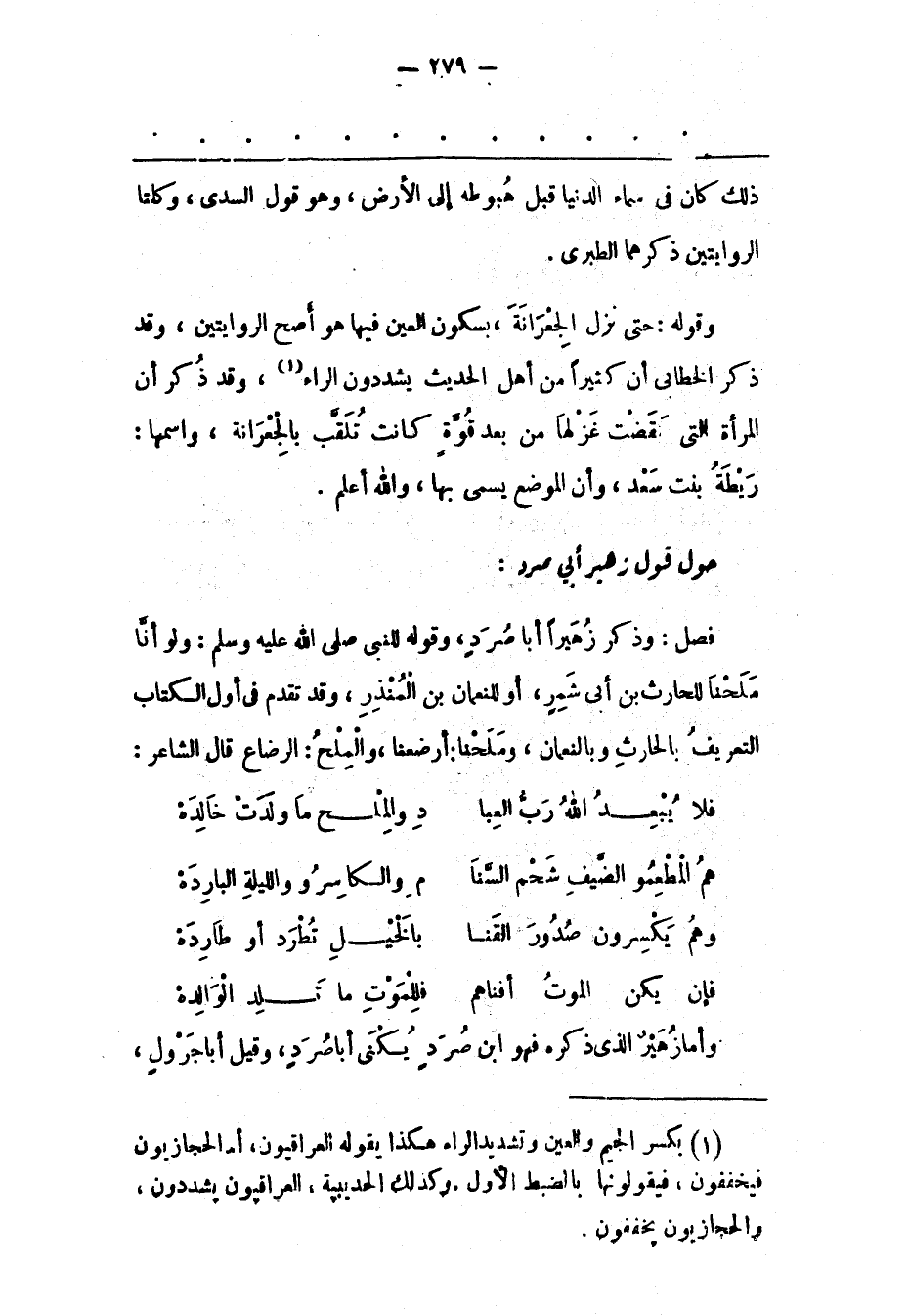 (1) بكسر الجيم والعين وتشديد الراء هكذا يقوله العراقيون، أما لحجازيون فيخففون، فيقولونها بالضبط الأول. وكذلك الحديبية، العراقيون يشددون، والحجازيون يخففون.