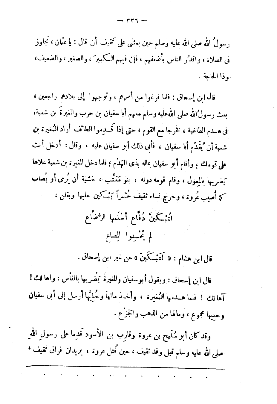 قَالَ ابْنُ هِشَامٍ: «لَتُبْكَيَنّ» عَنْ غَيْرِ ابْنِ إسْحَاقَ.