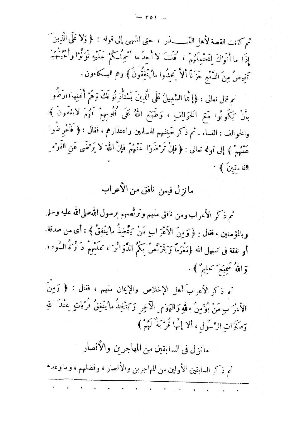 ثُمّ كَانَتْ الْقِصّةُ لِأَهْلِ الْعُذْرِ، حَتّى انْتَهَى إلَى قَوْلِهِ: وَلا عَلَى الَّذِينَ إِذا مَا أَتَوْكَ لِتَحْمِلَهُمْ، قُلْتَ لَا أَجِدُ مَا أَحْمِلُكُمْ عَلَيْهِ تَوَلَّوْا وَأَعْيُنُهُمْ تَفِيضُ مِنَ الدَّمْعِ حَزَناً أَلَّا يَجِدُوا ما يُنْفِقُونَ وهم البكاؤن.
