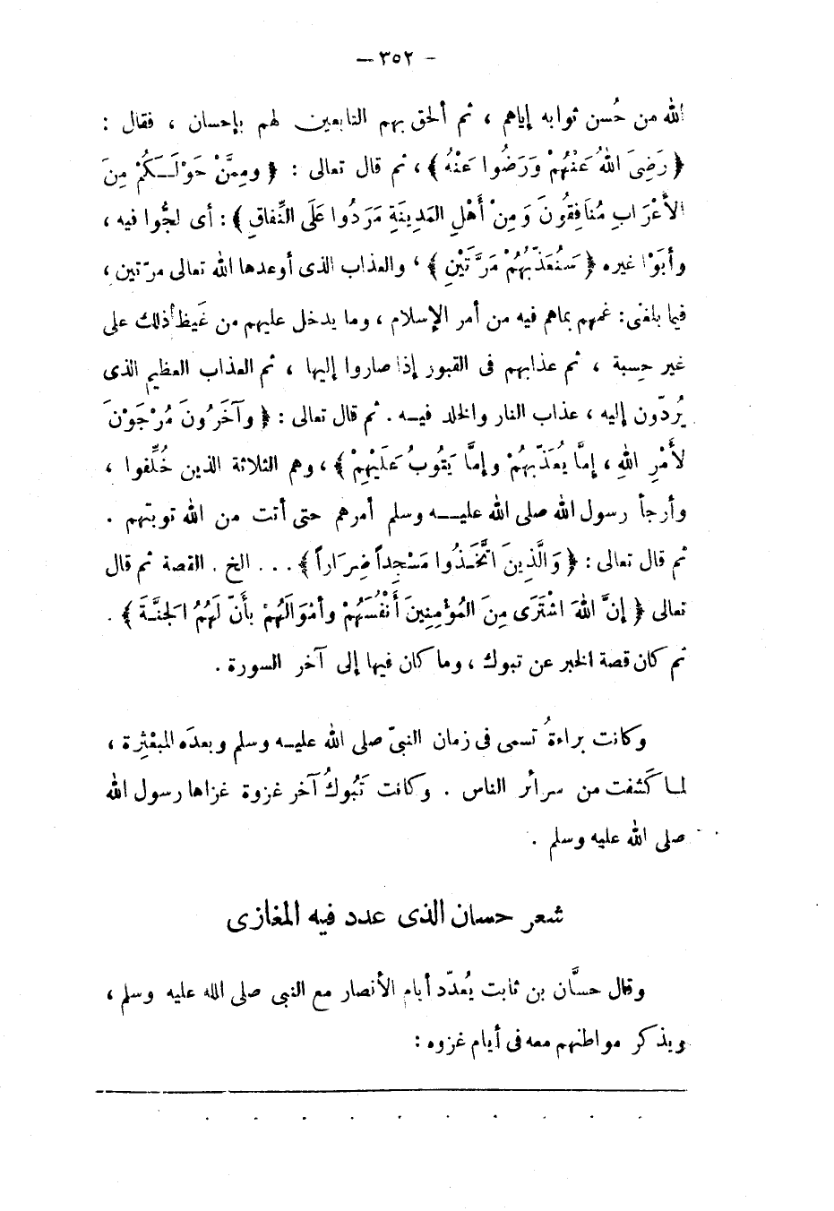 ثُمّ كَانَ قِصّةُ الْخَبَرِ عَنْ تَبُوكَ، وَمَا كَانَ فِيهَا إلَى آخِرِ السّورَةِ.
