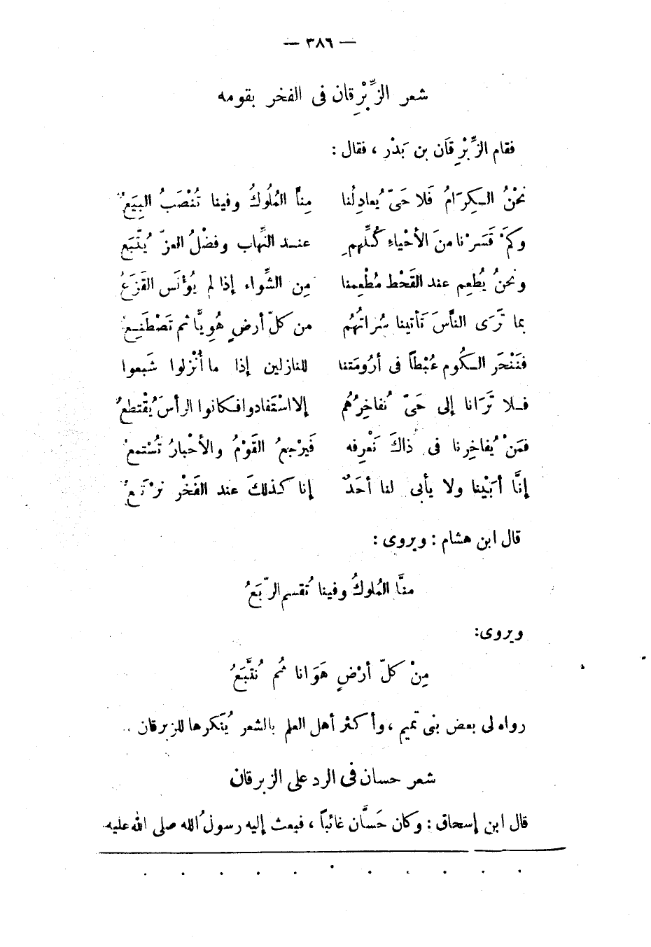 [شِعْرُ حَسّانَ فِي الرّدّ عَلَى الزّبْرِقَانِ]