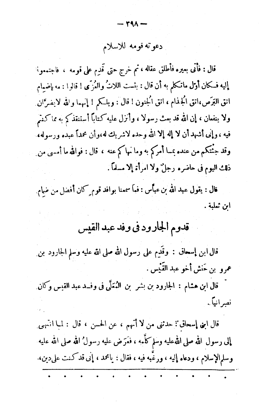 قَالَ ابْنُ إسْحَاقَ: وَقَدِمَ عَلَى رَسُولِ اللهِ صَلَّى اللَّهُ عَلَيْهِ وَسَلَّمَ الْجَارُودُ بْنُ عَمْرِو بْنِ حَنْشٍ أَخُو عَبْدِ الْقَيْسِ.