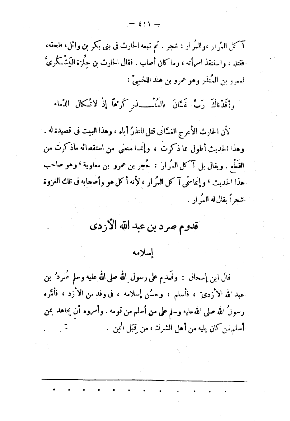 قَالَ ابْنُ إسْحَاقَ: وَقَدِمَ عَلَى رَسُولِ اللهِ صَلَّى اللَّهُ عَلَيْهِ وَسَلَّمَ صُرَدُ بْنُ عَبْدِ اللهِ الْأَزْدِيّ، فَأَسْلَمَ، وَحَسُنَ إسْلَامُهُ، فِي وَفْدٍ مِنْ الْأَزْدِ، فَأَمَرَهُ رَسُولُ اللهِ صَلَّى اللَّهُ عَلَيْهِ وَسَلَّمَ عَلَى مَنْ أَسْلَمَ مِنْ قَوْمِهِ. وأمره أَنْ يُجَاهِدَ بِمَنْ أَسْلَمَ مَنْ كَانَ يَلِيهِ من أهل الشرك، من قبل اليمن.