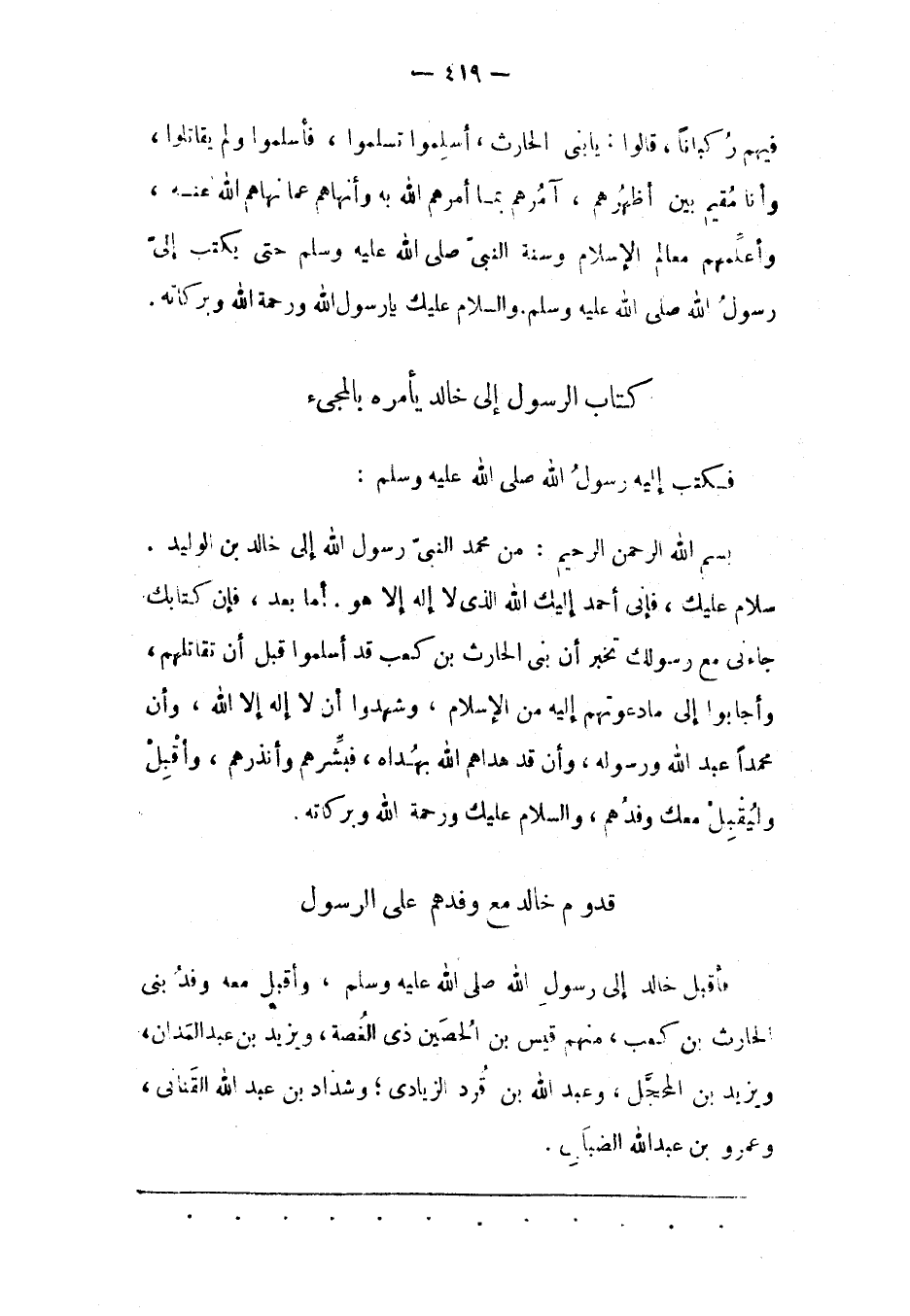 بِسْمِ اللهِ الرّحْمَنِ الرّحِيمِ: مِنْ مُحَمّدٍ النّبِيّ رَسُولِ اللهِ إلَى خَالِدِ بْنِ الْوَلِيدِ.