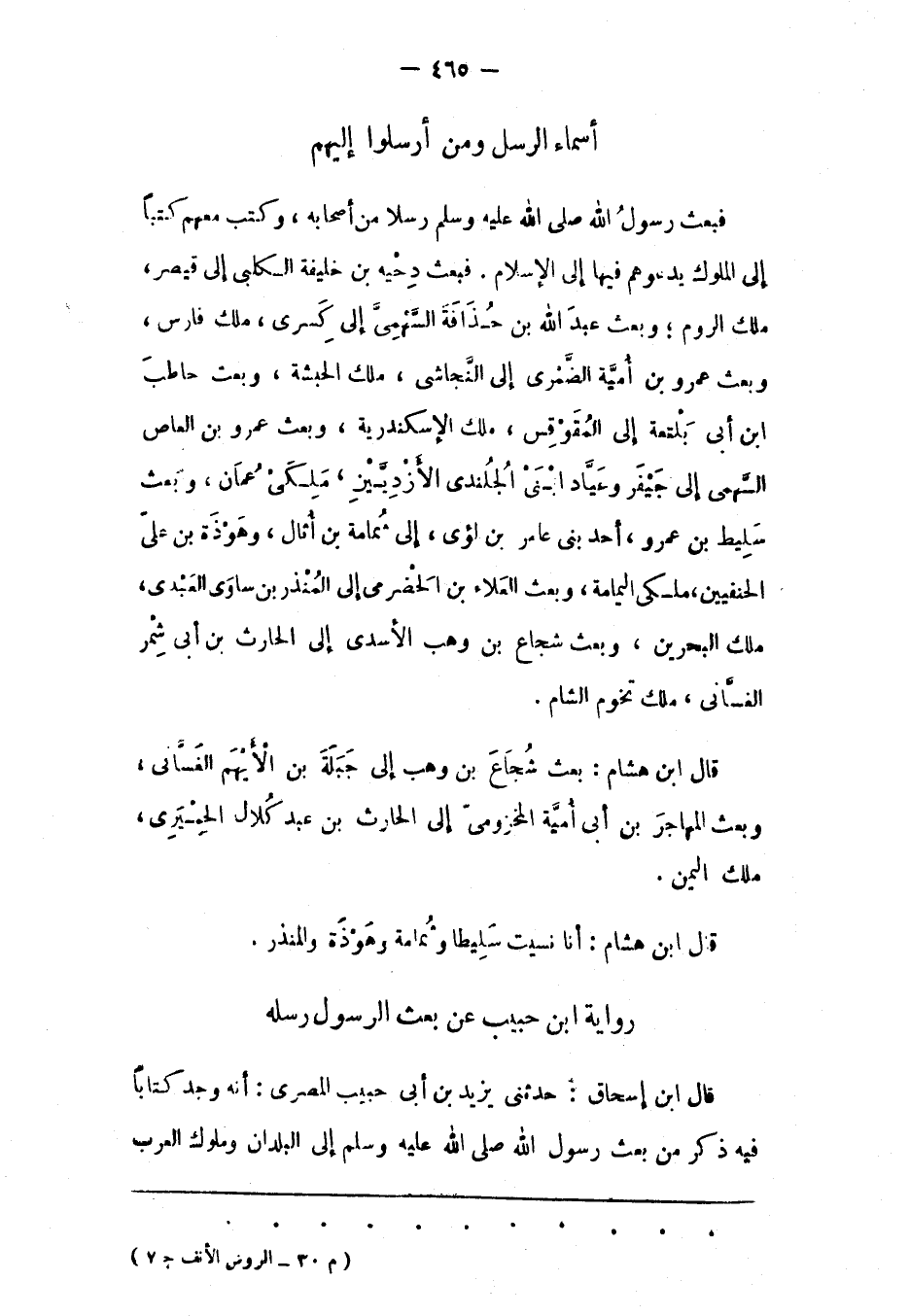 قَالَ ابْنُ إسْحَاقَ: حَدّثَنِي يَزِيدُ بْنُ أَبِي حَبِيبٍ الْمِصْرِيّ: أَنّهُ وَجَدَ كِتَابًا فِيهِ ذِكْرُ مَنْ بَعَثَ رَسُولُ اللهِ صَلّى اللهُ عَلَيْهِ وَسَلّمَ إلَى الْبُلْدَانِ وَمُلُوكِ الْعَرَبِ