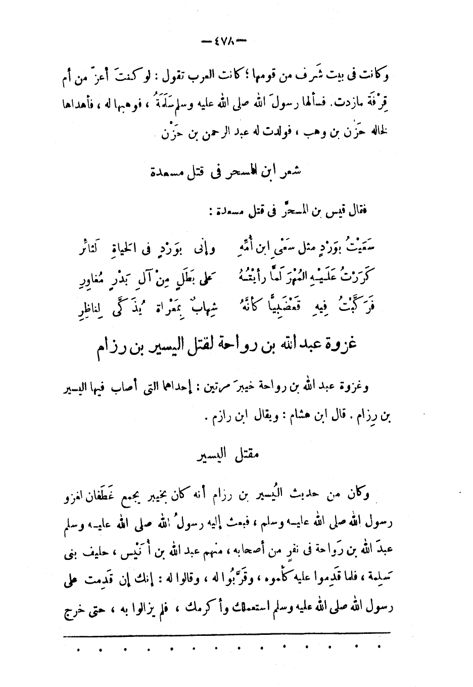 وَغَزْوَةُ عَبْدِ اللهِ بْنِ رَوَاحَةَ خَيْبَرَ مَرّتَيْنِ: إحْدَاهُمَا الّتِي أَصَابَ فِيهَا الْيَسِيرَ بْنَ رِزَامٍ. قَالَ ابْنُ هِشَامٍ: وَيُقَالُ ابْنُ رازم.