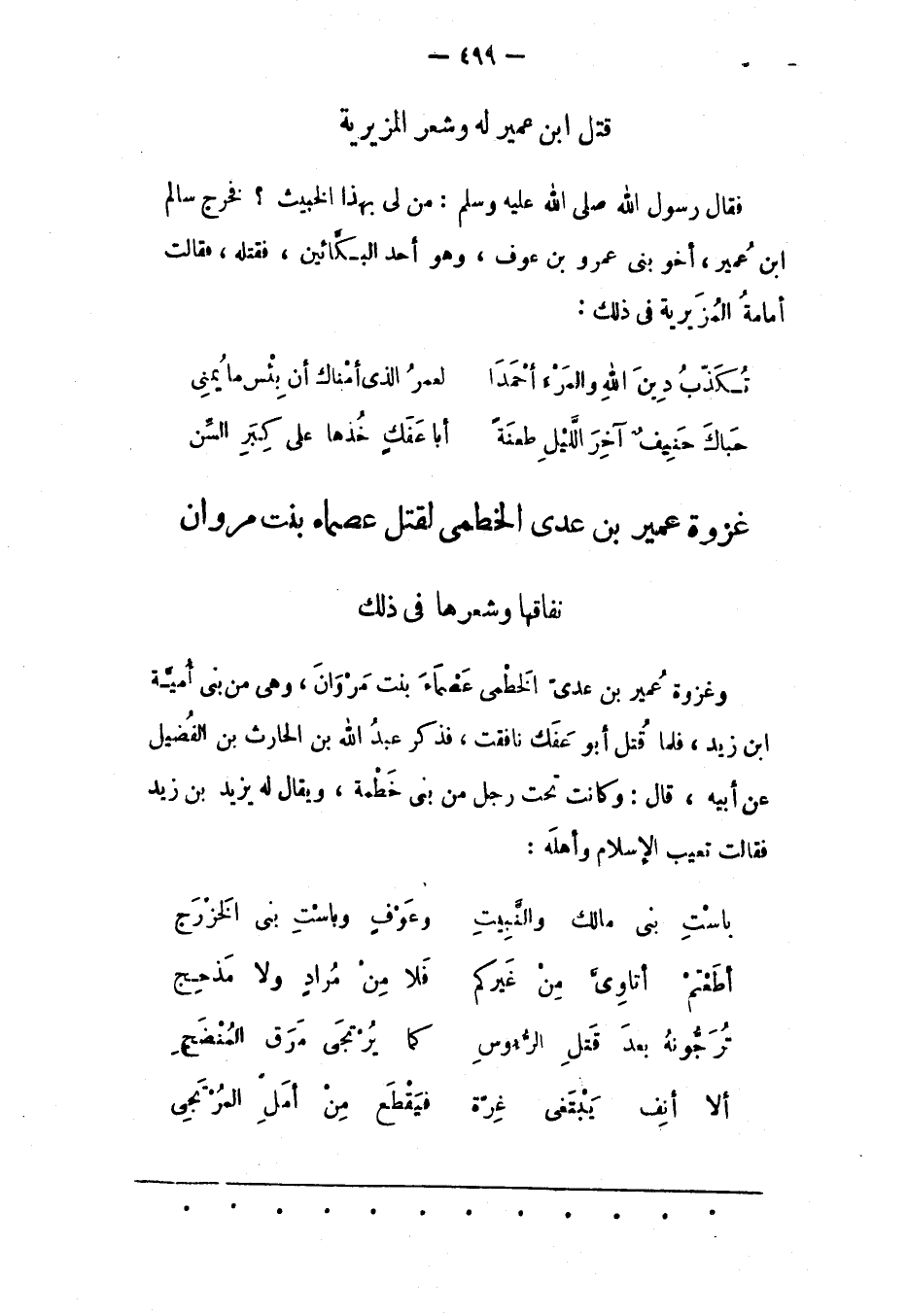 [قَتْلُ ابْنِ عُمَيْرٍ لَهُ وَشِعْرُ الْمُزَيْرِيّة]