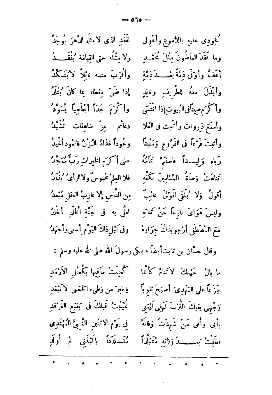 وَقَالَ حَسّانُ بْنُ ثَابِتٍ أَيْضًا، يَبْكِي رَسُولَ اللهِ صَلَّى اللَّهُ عَلَيْهِ وَسَلَّمَ: