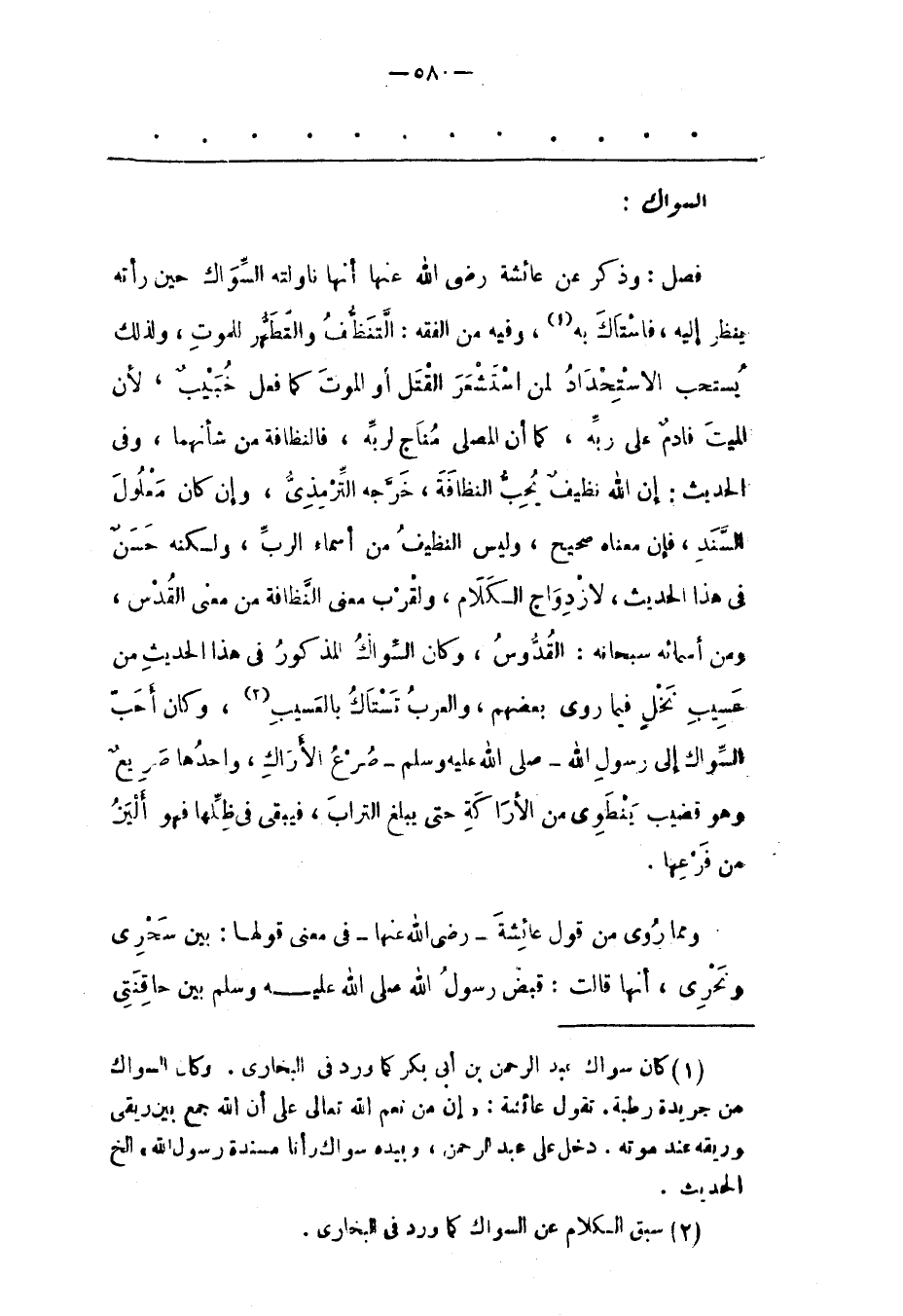 (2) سبق الكلام عن السواك كما ورد فى البخارى.