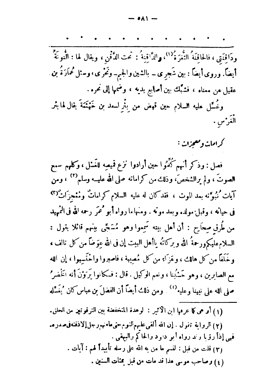 السّلَامُ عَلَيْكُمْ وَرَحْمَةُ اللهِ وَبَرَكَاتُهُ يَا أَهْلَ الْبَيْتِ إنّ فِي اللهِ عِوَضًا مِنْ كُلّ تَالِفٍ، وَخَلَفًا مِنْ كُلّ هَالِكٍ، وَعَزَاءً مِنْ كُلّ مُصِيبَةٍ، فَاصْبِرُوا وَاحْتَسِبُوا، إنّ اللهَ مَعَ الصّابِرِينَ، وَهُوَ حَسْبُنَا، وَنِعْمَ الْوَكِيلُ. قَالَ: فَكَانُوا يَرَوْنَ أَنّهُ الْخَضِرُ صَلّى اللهُ عَلَى نَبِيّنَا وَعَلَيْهِ «4» وَمِنْ ذَلِكَ أَيْضًا أَنّ الفضل بن عباس كان يغسّله