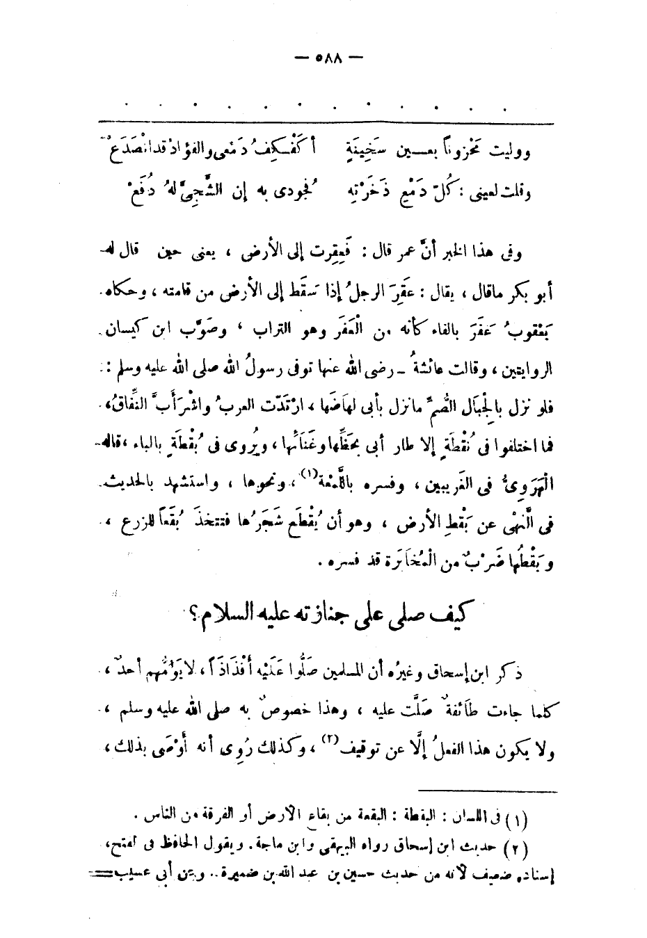 (2) حديث ابن إسحاق رواه البيهقى وابن ماجة. ويقول الحافظ فى الفتح، إسناده ضعيف لأنه من حديث حسين بن عبد الله بن ضميرة.. وعن أبى عسيب-