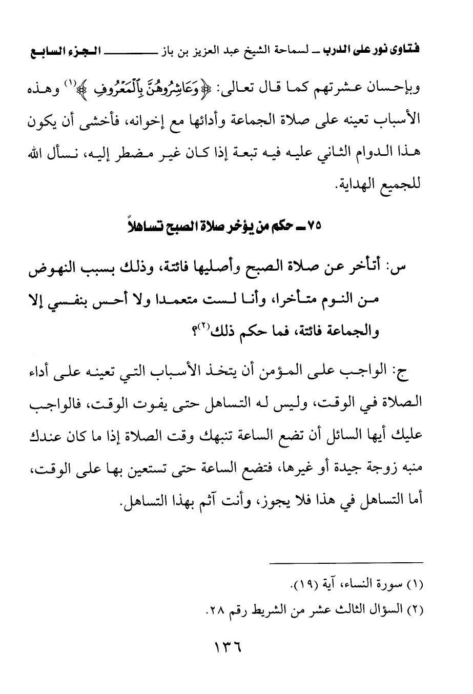 75 – حكم من يؤخر صلاة الصبح تساهلا