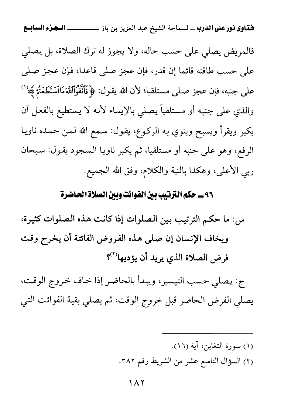 96 – حكم الترتيب بين الفوائت وبين الصلاة الحاضرة