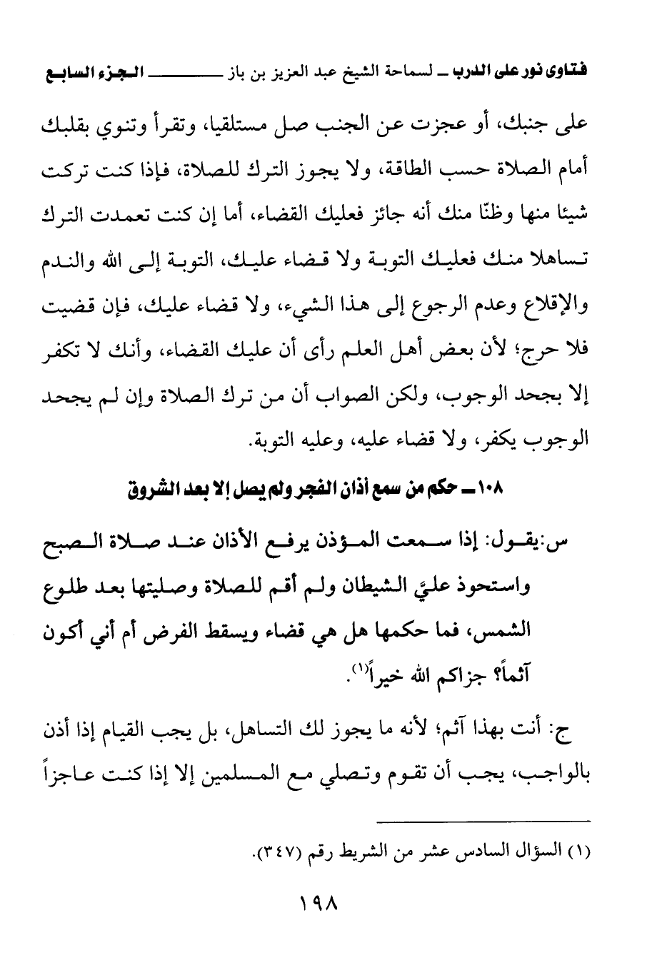 108 – حكم من سمع أذان الفجر ولم يصل إلا بعد الشروق