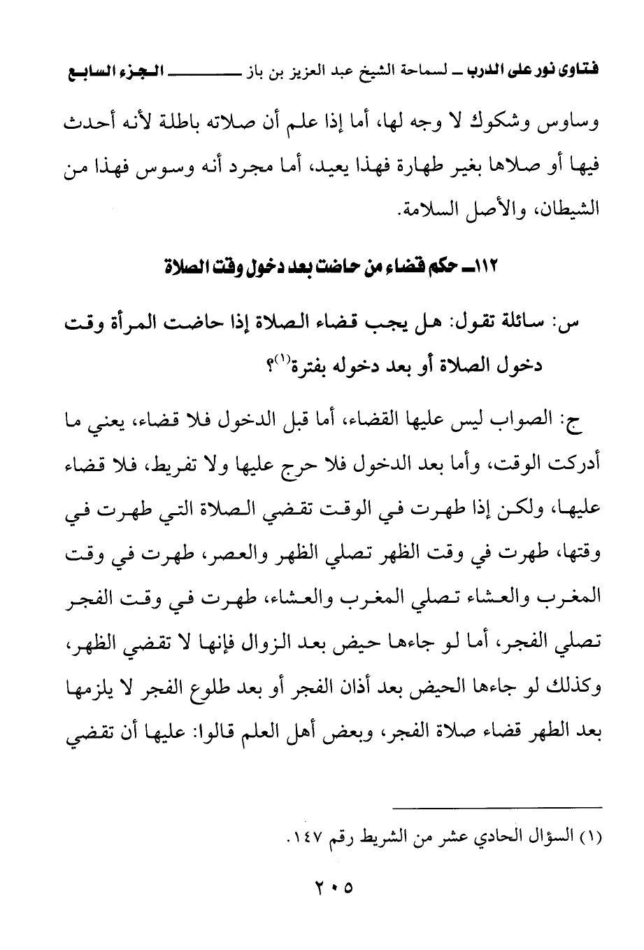 112 - حكم قضاء من حاضت بعد دخول وقت الصلاة