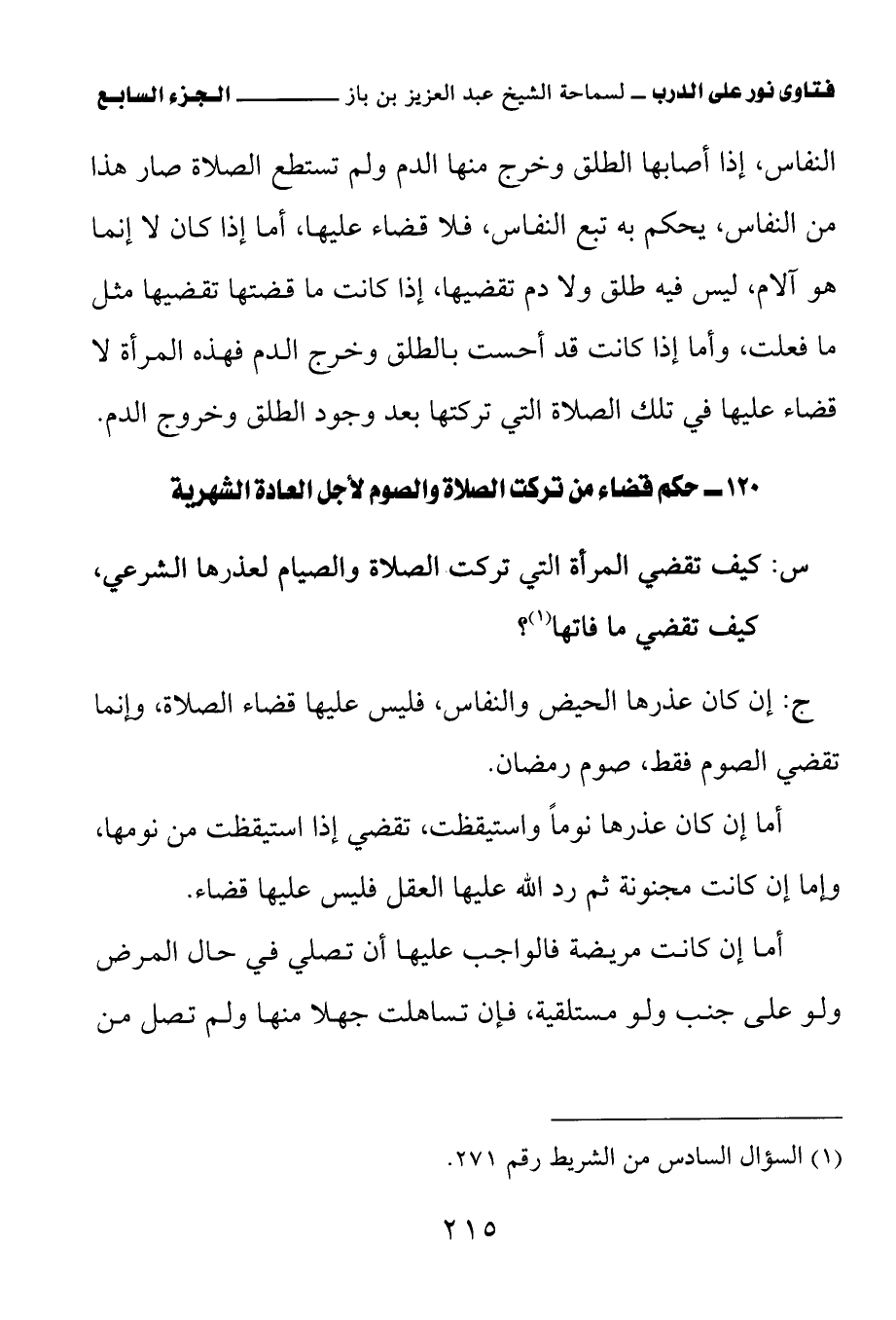 120 - حكم قضاء من تركت الصلاة والصوم لأجل العادة الشهرية