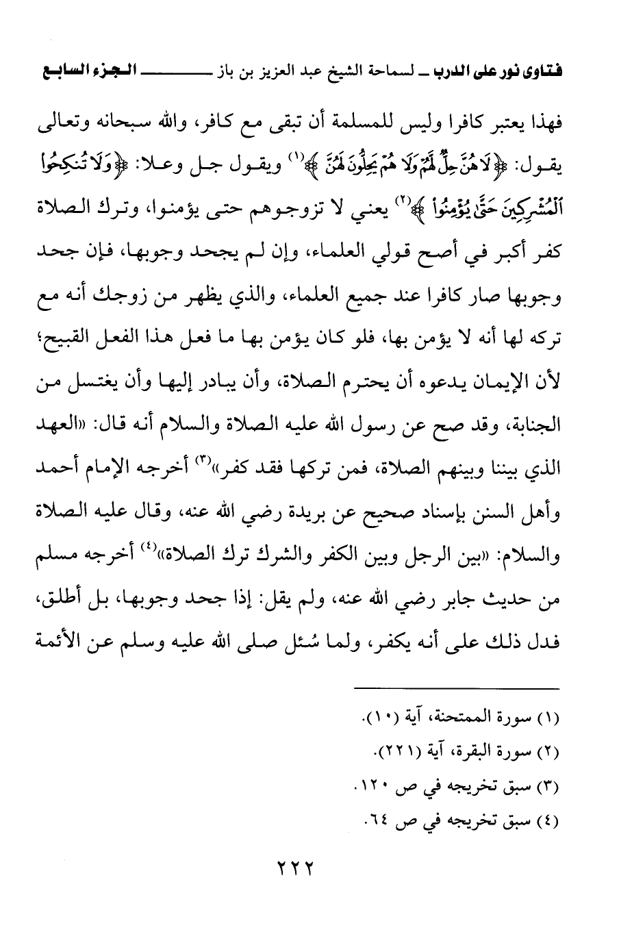 كتاب فتاوى نور على الدرب لابن باز بعناية الشويعر (اسم الجزء: 7)