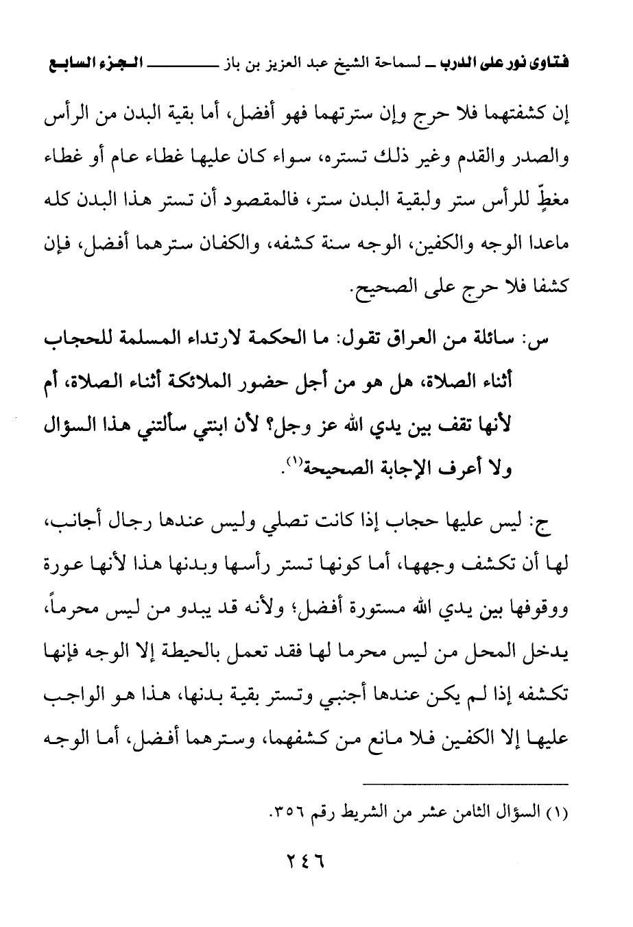 كتاب فتاوى نور على الدرب لابن باز بعناية الشويعر (اسم الجزء: 7)