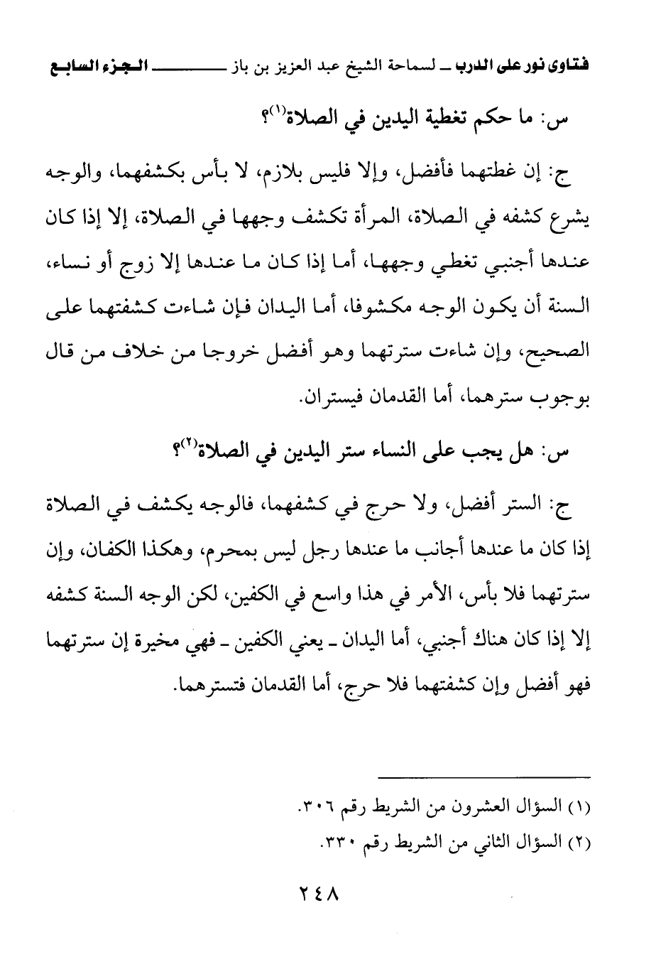 كتاب فتاوى نور على الدرب لابن باز بعناية الشويعر (اسم الجزء: 7)