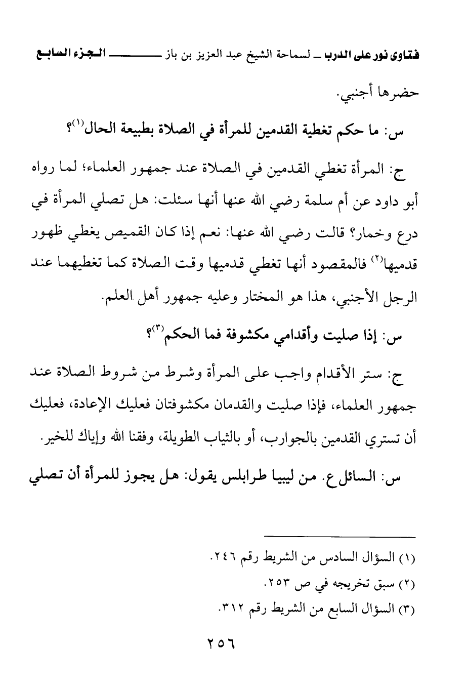 س: إذا صليت وأقدامي مكشوفة فما الحكم (¬3)؟
