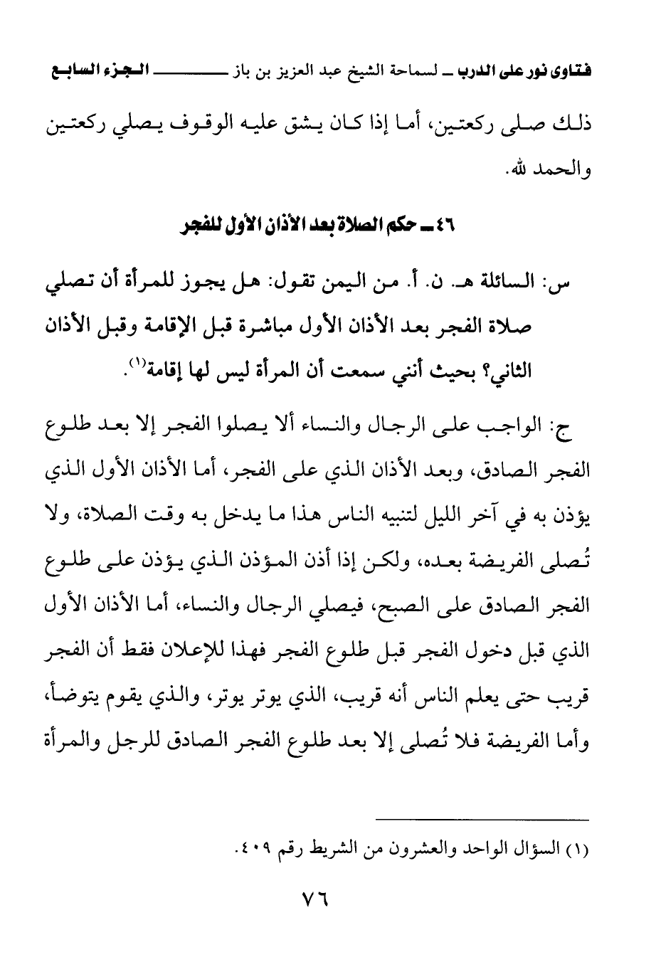 46 – حكم الصلاة بعد الأذان الأول للفجر