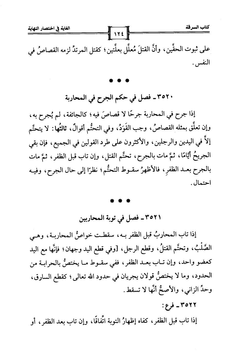 إذا جرح في المحاربة جرحًا لا قصاصَ فيه؛ كالجائفة، لم يُجرح به، وإن تعلق بمثله القصاصُ، وجب القَوَدُ، وفي التحتُّم أقوالٌ، ثالثُها: لا يتحتَّم إلَّا في اليدين والرجلين، والأكثرون على طرد القولين في الجميع، فإن بقي الجريحُ أيَّامًا، ثمَّ مات بالجرح، تحتَم القتل، وإن تاب قبل الظفر، ثمَّ مات بالجرح بعد الظفرِ، فالأظهرُ سقوط التحتُّم؛ نظرًا إلى حال الجرح، وفيه احتمال.