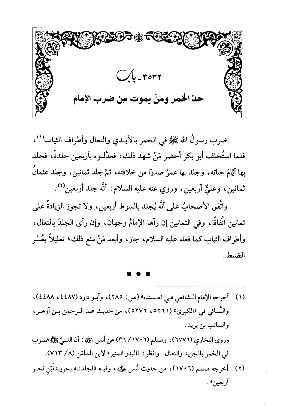 3532 - باب حدِّ الخمر ومَنْ يموت مِن ضرب الإِمام
