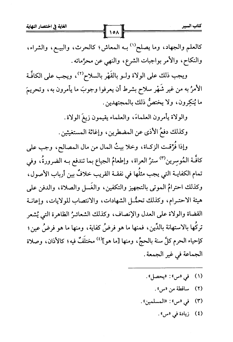 وإذا فُرِّقت الزكاة، وخلا بيتُ المال من مال المصالح، وجب على كافَّة المُوسِرين (¬3) سترُ العراة، وإطعامُ الجياع بما تندفع به الضرورةُ، وفي تمام الكفاية التي يجب مثلُها في نفقة القريب خلافٌ بين أرباب الأصول، وكذلك احترامُ الموتى بالتجهيز والتكفين، والغَسل والصلاة، والدفن على هيئة الاحترام، وكذلك تحمُّل الشهادات، والانتصاب للولايات، وإعانة القضاة والولاة على العدل والإنصاف، وكذلك الشعائرُ الظاهرة التي يُشعر تركُها بالاستهانة بالدِّين، فمنها ما هو فرضُ كفاية، ومنها ما هو فرضُ عين؛ كإحياء الحرم كلَّ سنة بالحجِّ، ومنها [ما هو] (¬4) مختلَفٌ فيه؛ كالأذان، وصلاة الجماعة في غير الجمعة.