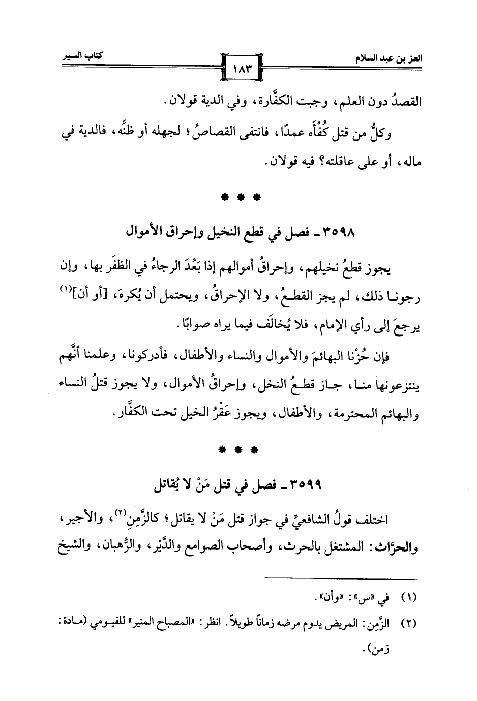 3598 - فصل في قطع النخيل وإحراق الأموال
